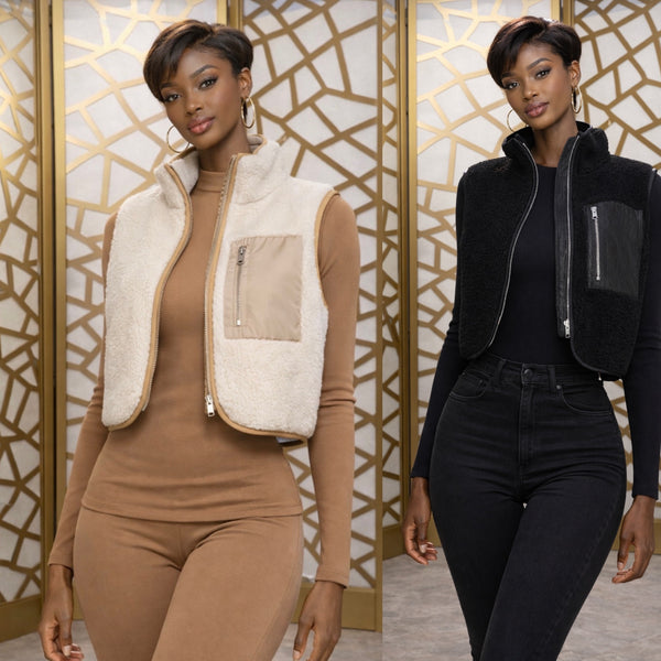 Boucher cropped high neck vest with a chest pocket and zipper